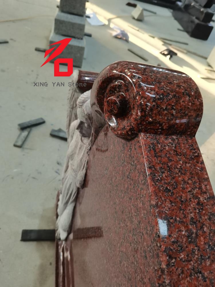హస్తకళ: ప్రధాన సమాధి రాయి ప్యానెల్ చక్కగా పాలిష్ చేయబడింది, ఫలితంగా అద్దం లాంటి ఉపరితలం ఉంటుంది. ఎడమ వైపున ఉన్న దేవదూత శిల్పం త్రిమితీయ చెక్కడం పద్ధతిని ఉపయోగించి రూపొందించబడింది, రెక్కలు, వస్త్రాల అల్లికలు మరియు వ్యక్తీకరణల యొక్క సున్నితమైన మరియు జీవసంబంధమైన వర్ణనలతో. చేతితో పాలిష్ చేసిన వివరాలు వెచ్చని మరియు మృదువైన ఆకృతిని కలిగి ఉంటాయి.