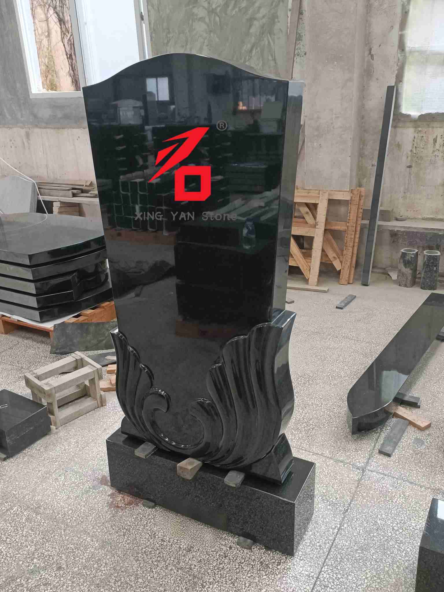 మెటీరియల్: అధిక-నాణ్యత బ్లాక్ గ్రానైట్ నుండి తయారు చేయబడింది, రాయి దట్టంగా, గట్టిగా మరియు అత్యంత నిగనిగలాడేది. పాలిష్ చేసిన తర్వాత, ఉపరితలం అద్దం వలె మృదువైనది, బహిరంగ వాతావరణం మరియు తుప్పుకు దీర్ఘకాలిక నిరోధకతను అందిస్తుంది, సమాధి రాయి ఎప్పటిలాగే కొత్తగా ఉండేలా చేస్తుంది.