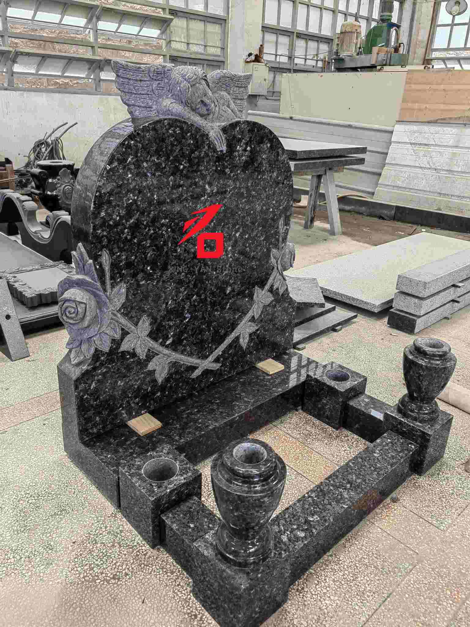 డిజైన్: ప్రధాన సమాధి రాయి గుండె ఆకారాన్ని కలిగి ఉంది, దేవదూత శిల్పంతో అగ్రస్థానంలో ఉంది మరియు చుట్టూ గులాబీ రిలీఫ్లు ఉన్నాయి. మొత్తం శైలి వెచ్చగా మరియు స్మారకంగా ఉంటుంది;