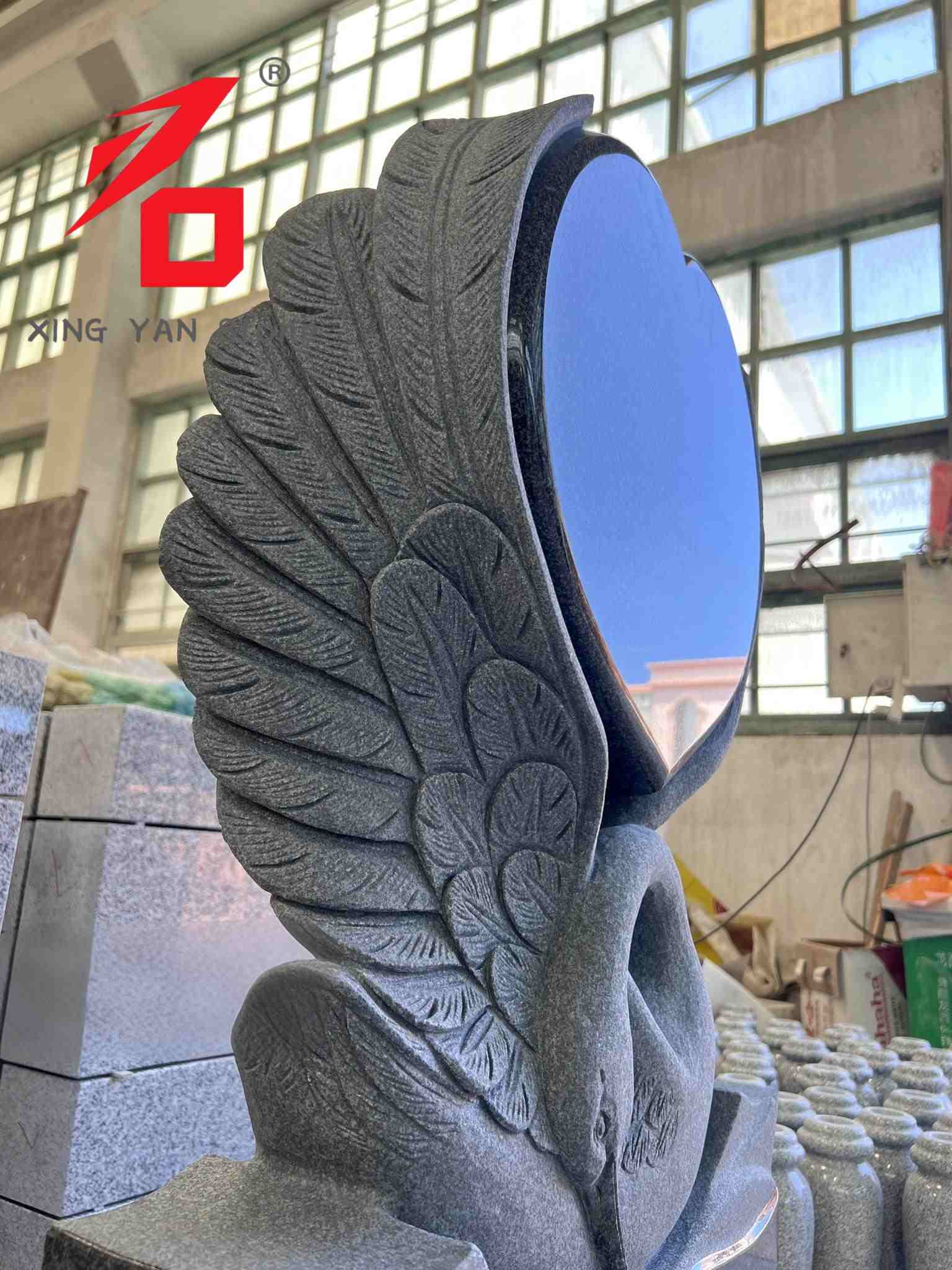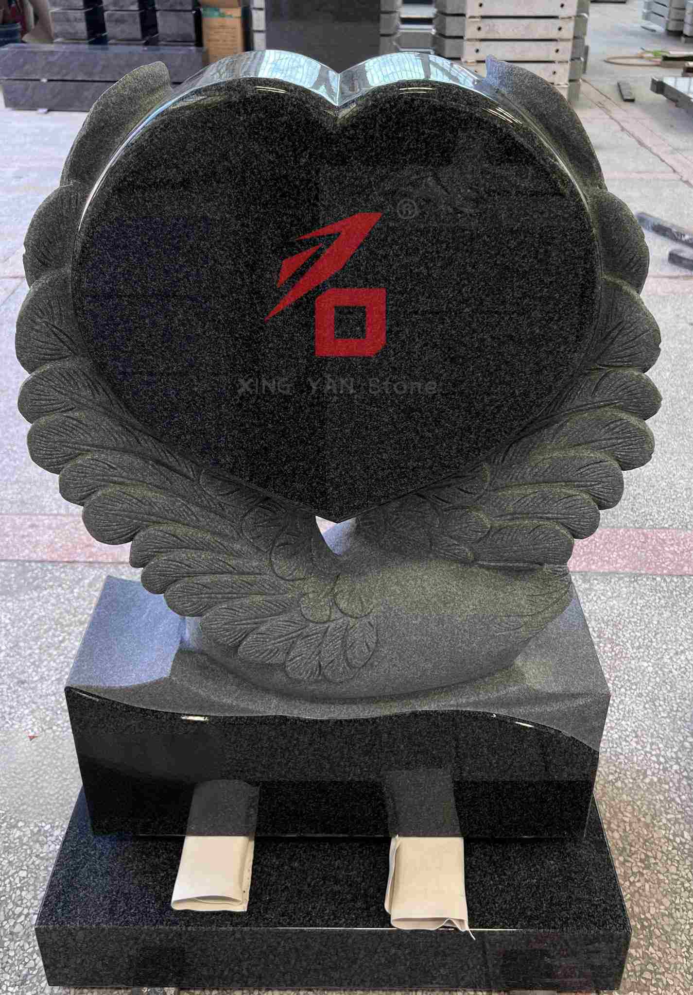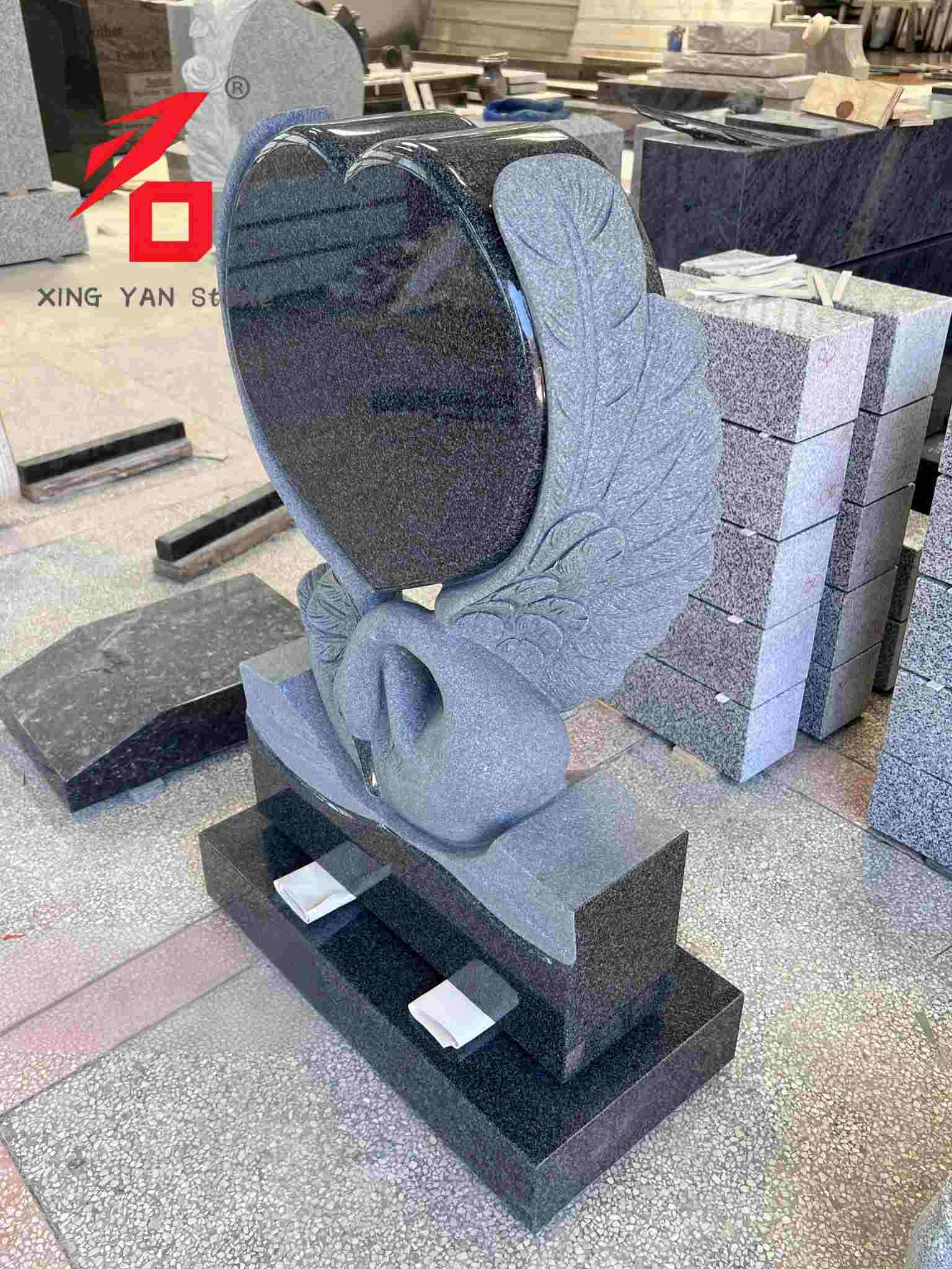 డిజైన్: మెయిన్ బాడీ పాలిష్ చేసిన నల్లని గుండె, దాని వెనుక ప్రాణమున్న హంస రెక్కలు చెక్కబడి ఉంటాయి. హంస ఆకారం మరియు హృదయం మరణించినవారికి శాశ్వతమైన ప్రేమ మరియు జ్ఞాపకార్థం సూచిస్తుంది. మొత్తం డిజైన్ అత్యంత కళాత్మకంగా ఉంది, సాంప్రదాయ సమాధుల యొక్క మార్పులేని శైలి నుండి దీనిని వేరు చేస్తుంది.