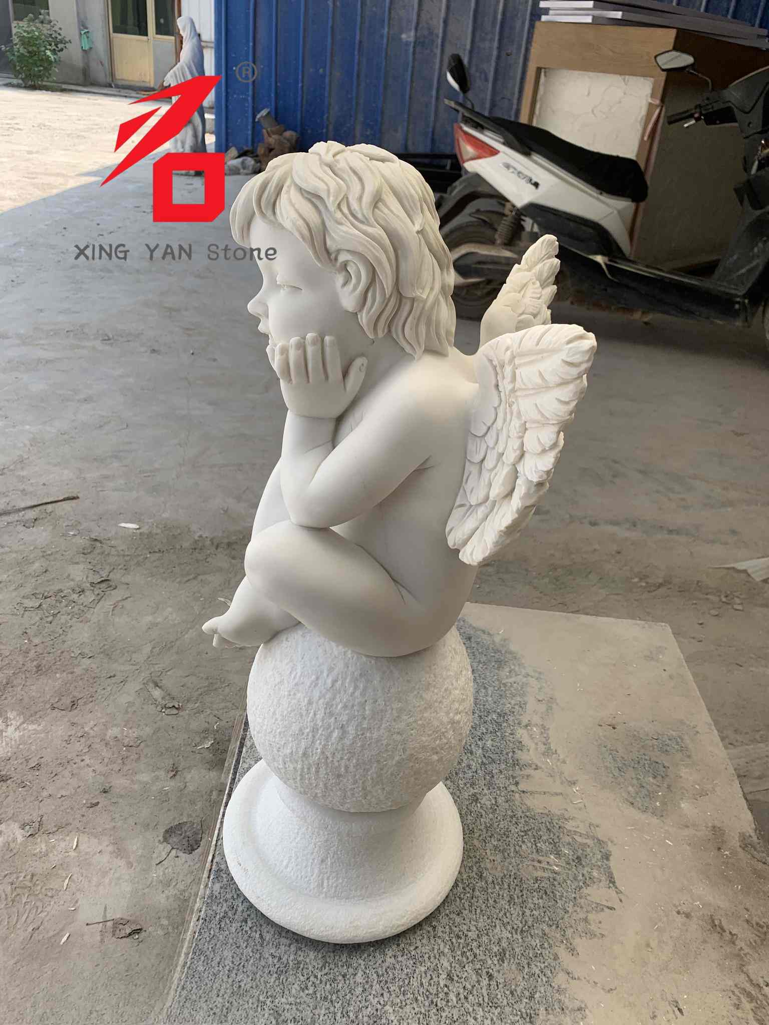 డిజైన్ శైలి: యూరోపియన్ క్లాసికల్ శైలిని అవలంబిస్తూ, కెరూబ్ ఆలోచనాత్మక భంగిమలో, చేతులు అతని గడ్డానికి మద్దతుగా, ప్రశాంతమైన వ్యక్తీకరణతో చిత్రీకరించబడింది. అతని రెక్కలు స్పష్టంగా నిర్వచించబడ్డాయి మరియు ఈక ఆకృతి విభిన్నంగా ఉంటుంది, ఇది యూరోపియన్ గార్డెన్లు, మతపరమైన ప్రదేశాలు లేదా స్మారక సెట్టింగ్ల అలంకరణ అవసరాలకు సరిపోయే మొత్తం శృంగార అనుభూతిని సృష్టిస్తుంది.